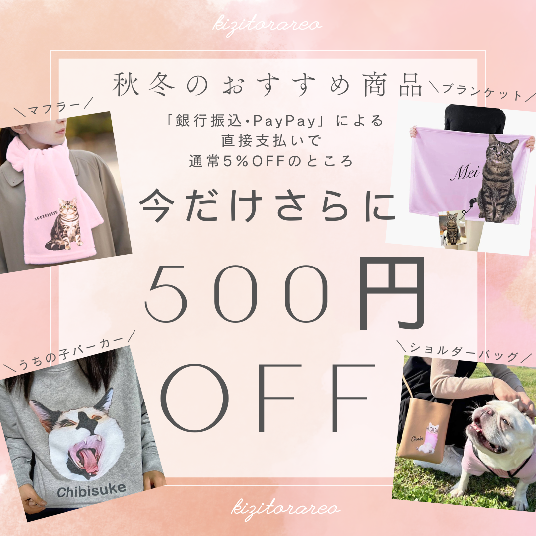 いつも応援してくださる皆さまへ、秋冬にぴったりの「うちの子オーダーグッズ」をお得に楽しんでいただけるキャンペーンのお知らせです✨